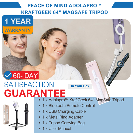 Adolapro™ KraftGeek 64” MagSafe Tripod-Works with all smartphones