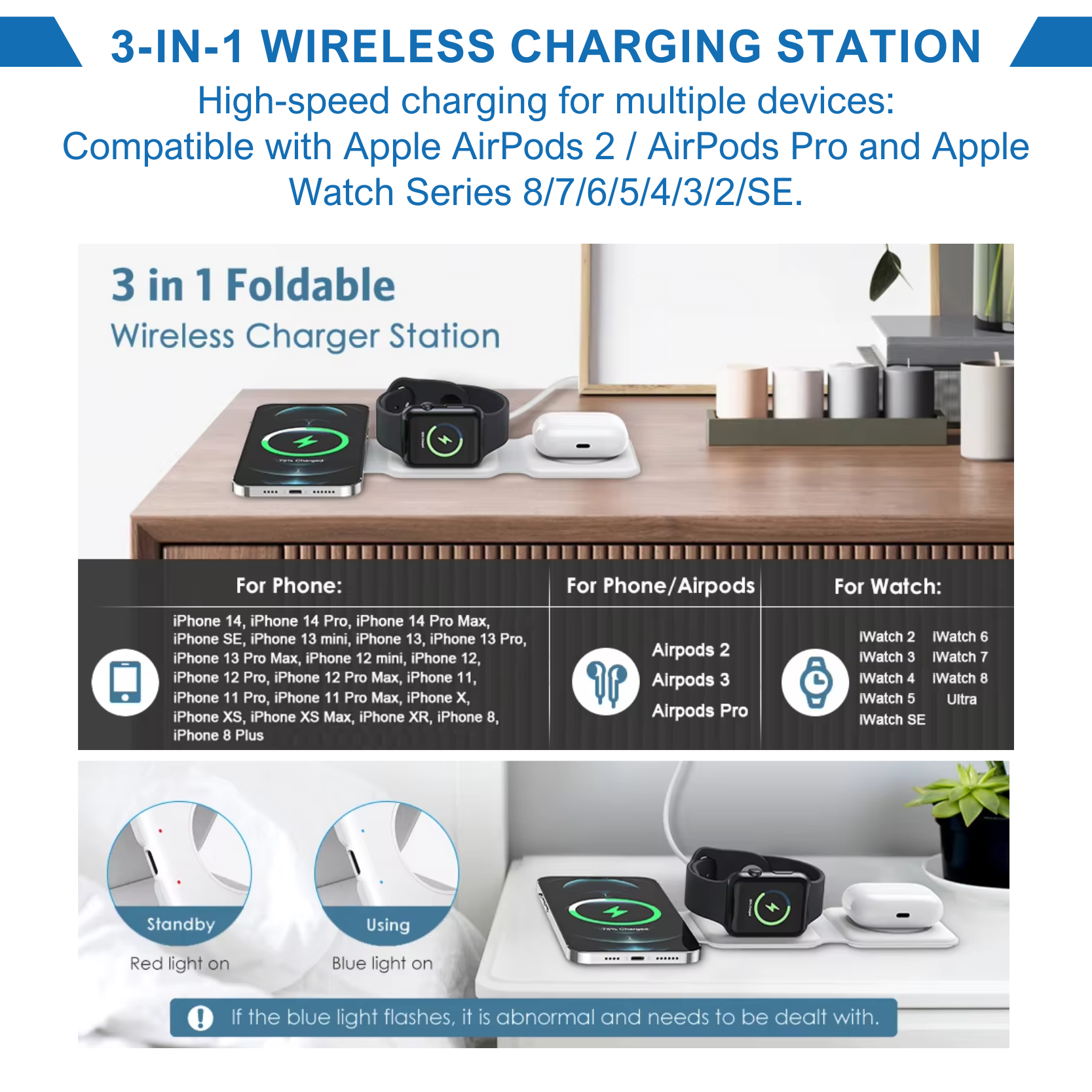 Yes, the Adolapro™ 3-in-1 Magnetic Charger features a foldable, compact design that makes it perfect for travel. It’s lightweight, portable, and fits easily into your bag, keeping you charged wherever you go!