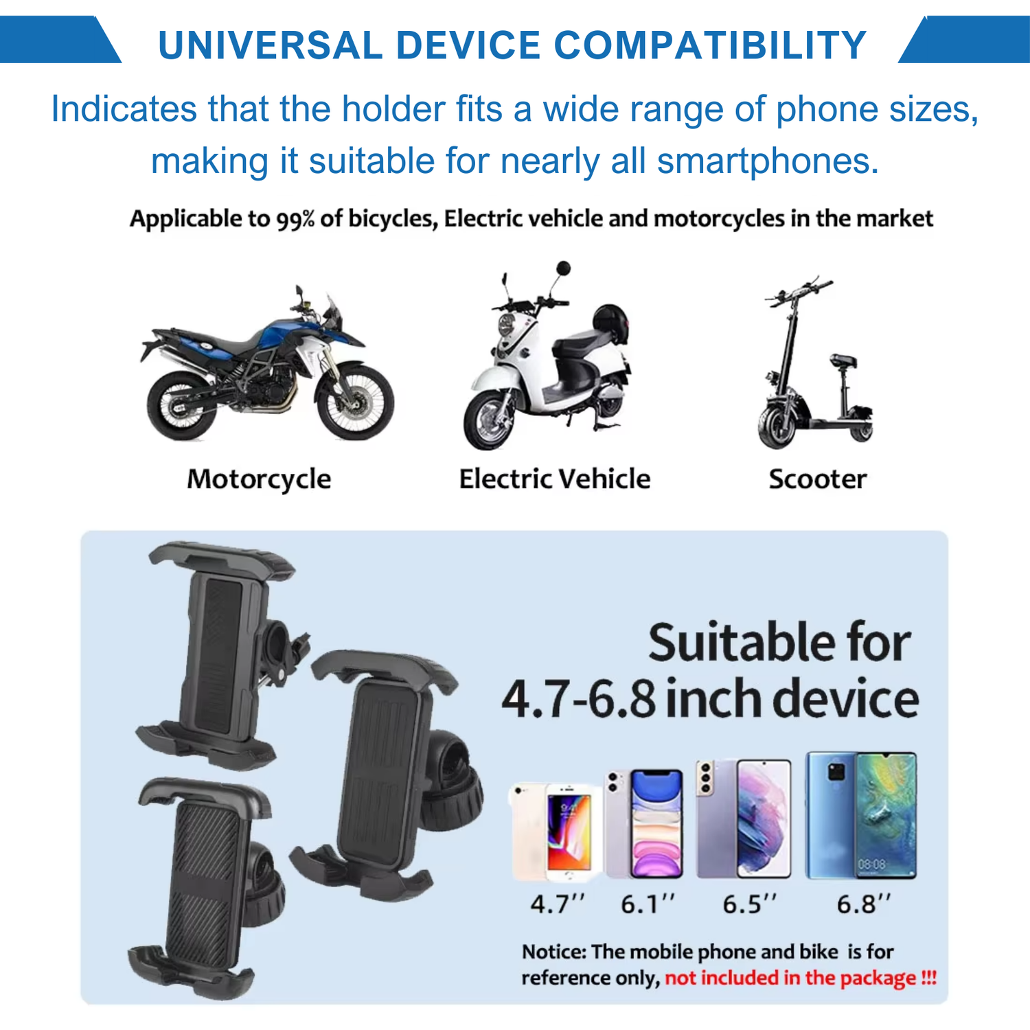 The Adolapro™ 360° Bike & Moto Phone Holder is versatile and can be used on a wide range of vehicles with handlebars. Here’s a list of compatible vehicles: