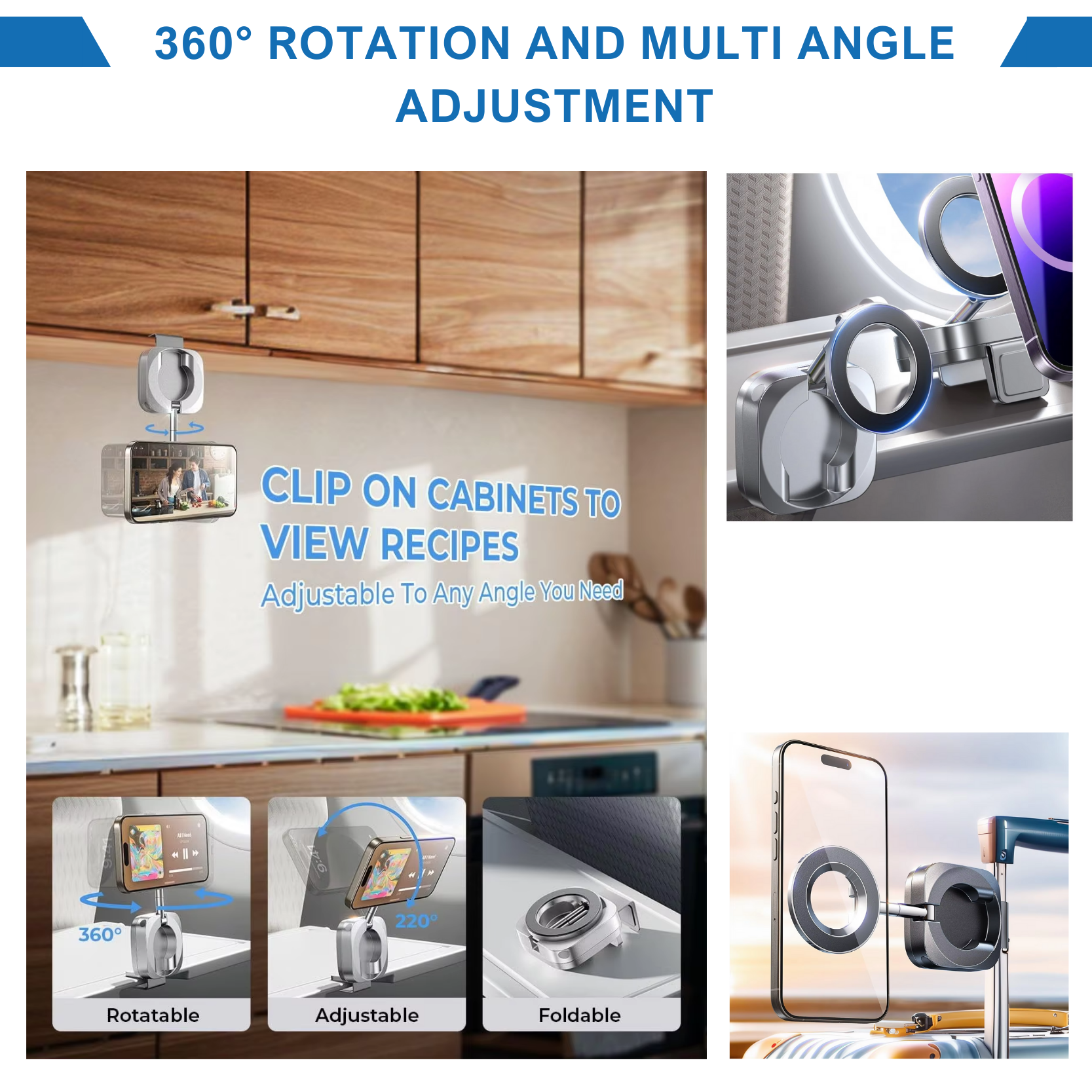 Whether on a flight, road trip, or at home, enjoy 360° flexibility, universal compatibility, and a lightweight foldable design that keeps your phone secure and accessible wherever you go.