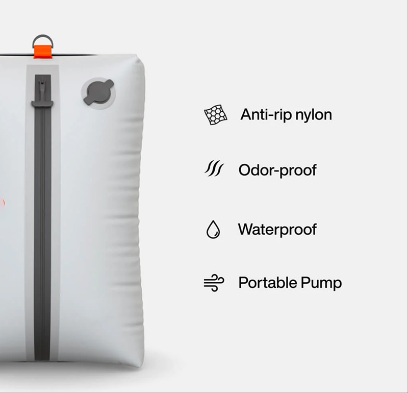 Made from premium waterproof nylon with heat-sealed edges and a durable mini pump battery lasting up to 15 trips per charge — designed for years of reliable travel performance.